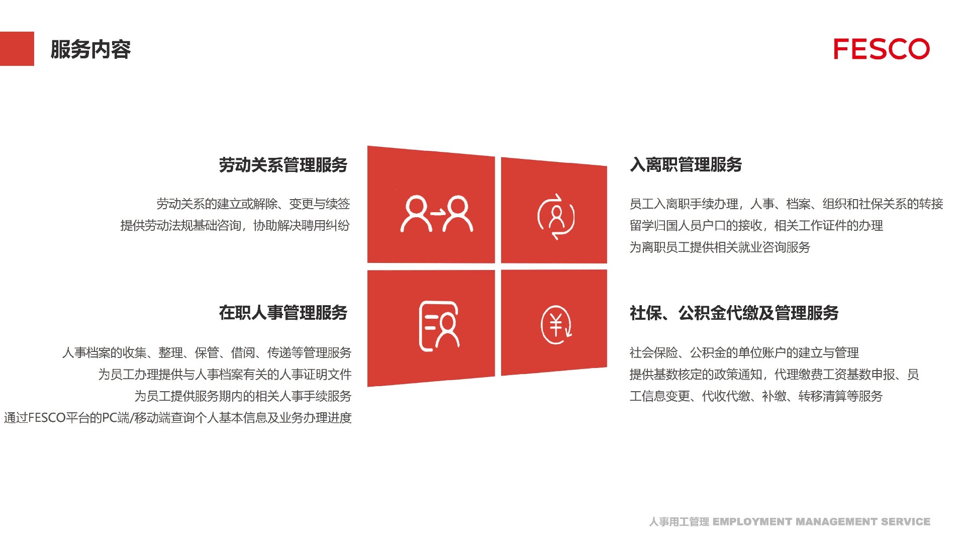 入職培訓、退職、去職相干自顧請前去"員工自助辦事平臺 es.fesco.com.cn"